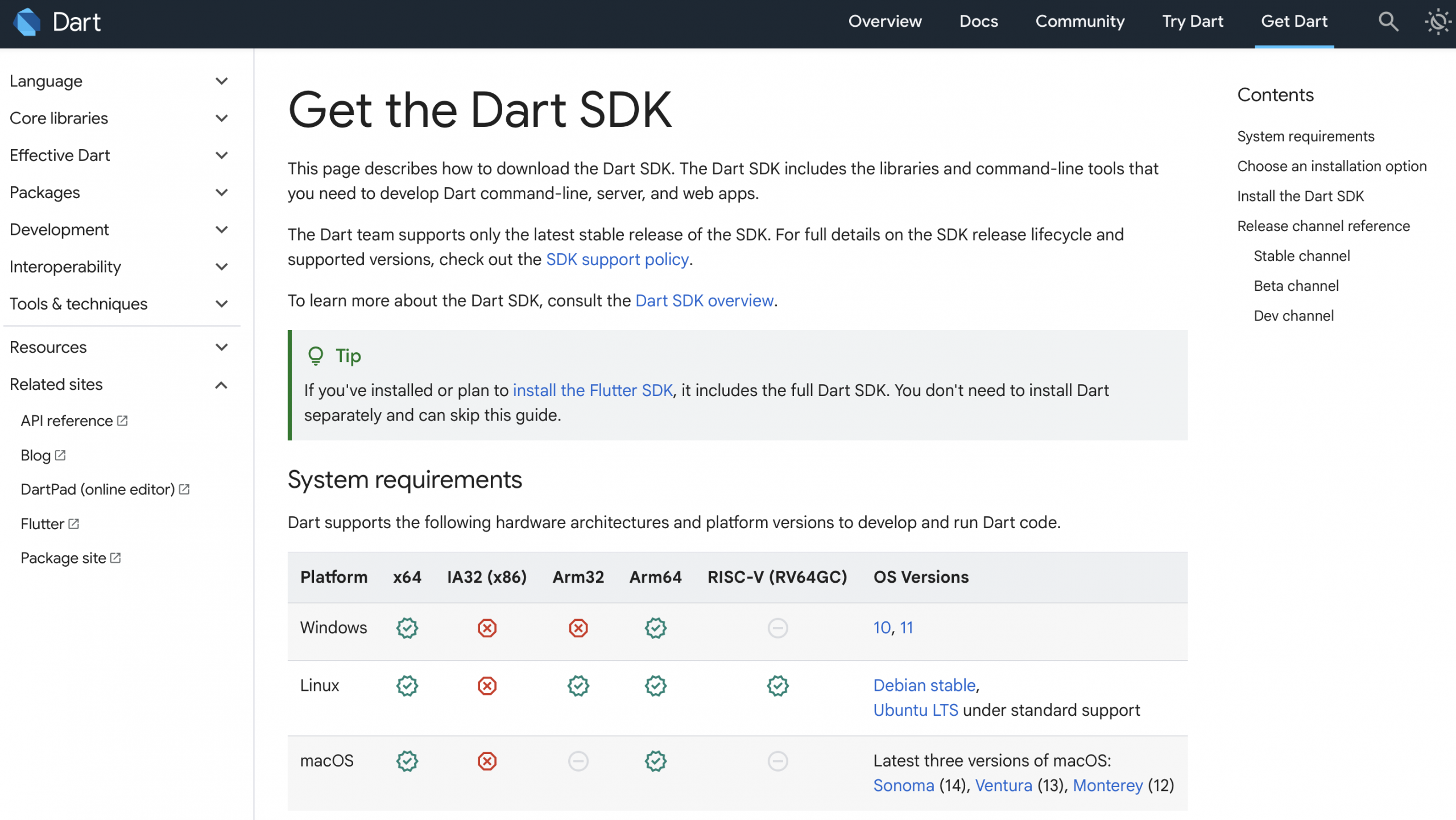A opción máis completa é instalar Flutter, que xa incorpora o Dart SDK e permite desenvolver aplicacións multiplataforma (móbil, web, escritorio).